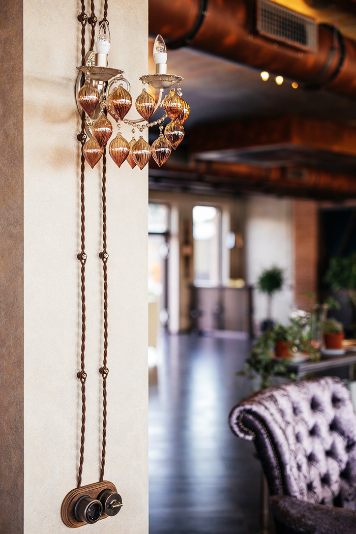 Le câblage rétro est non seulement élégant, mais aussi une alternative technologique au routage traditionnel des câbles dans les goulottes de câbles. En règle générale, il est utilisé dans les intérieurs provençaux, grunge, loft, classique victorien, vintage, moderne.