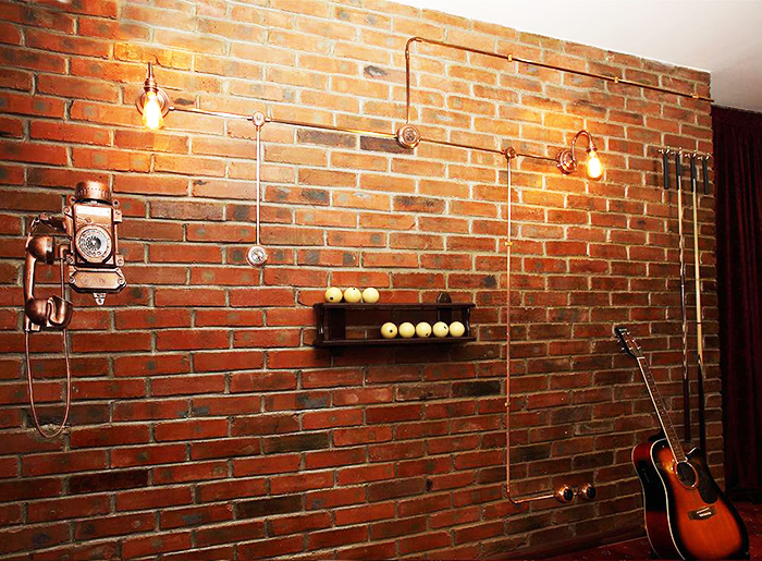Tout d'abord, vous devez corriger l'idée fausse selon laquelle le rétro câblage est effectué exclusivement avec un câble ouvert. La pose de tuyaux électriques en métal peint et en plastique semblable au cuivre est autorisée. De tels tuyaux, en plus d'être décoratifs, remplissent également une fonction de protection. De plus, ils permettent d'utiliser un câble ordinaire. Cette méthode de pose externe est utilisée dans style scandinave (décoration intérieure en bois) ou grenier (murs en brique et béton). De plus, conformément aux exigences du PUE, la pose de câbles dans les tuyaux est effectuée dans des pièces avec humidité élevée: salles de bains, douches, saunas, etc.