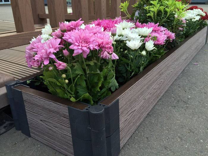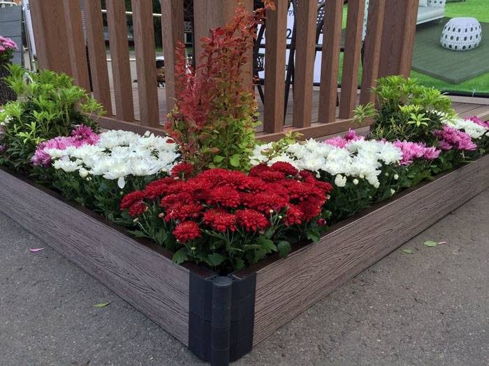- Пластмасов. Най-гъвкавата опция, можете да създадете всякаква форма на цветни лехи и лехи, да използвате в ландшафтен дизайн, за да разделите територията на зони. Разнообразието от модели и достъпна цена привлича много градинари към WPC панелите или граничните ленти.