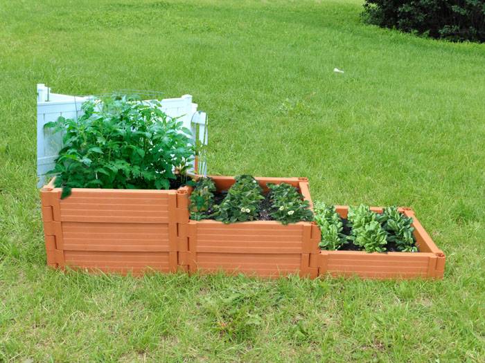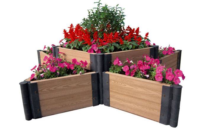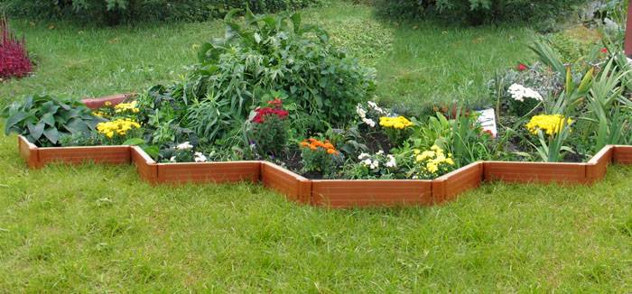 В магазините могат да бъдат закупени не само готови модели панели, но и пластмасови огради за градински легла. В този случай можете самостоятелно да регулирате размера на бъдещото място за кацане, да промените формата и реда на сглобяване на елементи. Такъв материал се продава в комплекти от няколко елемента.