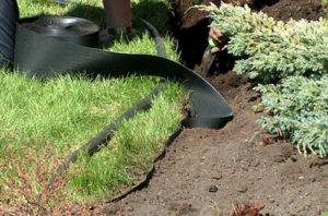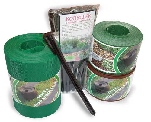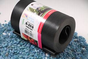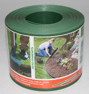 Пластмасовата бордюрна лента е най-достъпният и разпространен материал за ограждане на градински лехи и цветни лехи. Можете да закупите такъв материал във всеки градински магазин в града или чрез интернет с доставка. Цената на една ролка от 10 м е малко вероятно да надвиши сумата от 500 рубли.