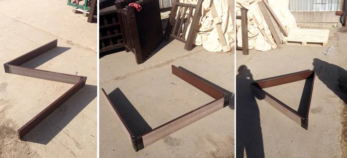 Лесно е да се сглобяват легла от WPC панели. Пакетът включва самите дъски и въртящи се панти, които ви позволяват да придадете на бъдещата градина или цветна градина всякаква форма. При такава структура не е необходимо да имате определена строителна подготовка, достатъчно е да следвате проста инструкция: