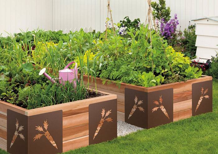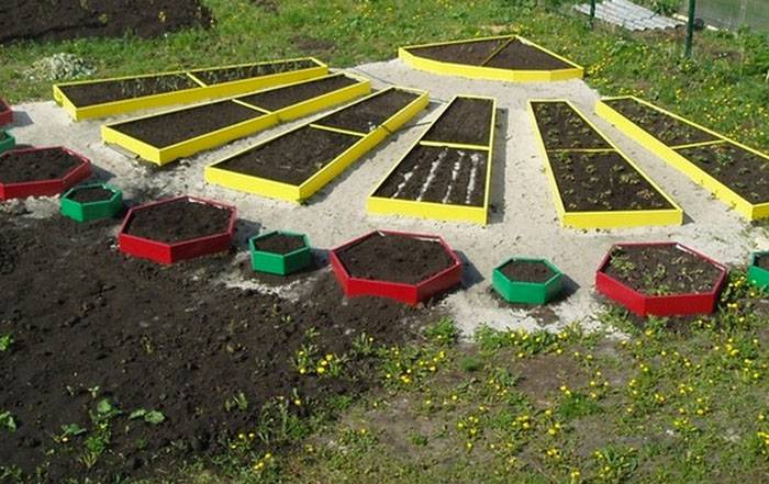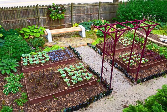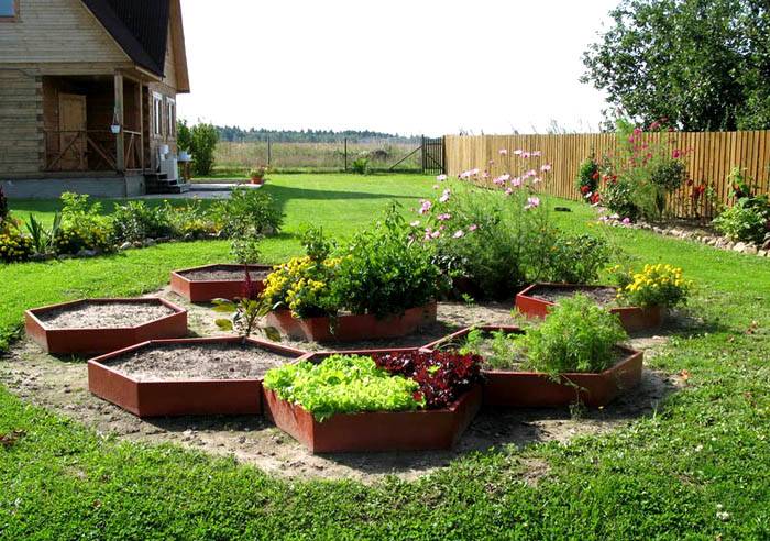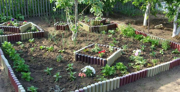 Така че декорирането и създаването на кокетна зеленчукова градина не е скъпо от финансова гледна точка. Достатъчно е да използвате разнообразни пластмасови бордюри и ленти. Поради неговата издръжливост няма да е необходимо да променяте външния вид на сайта поради износването на материала, а поради промяна в настроението ви. Ето няколко атрактивни примера за снимки: