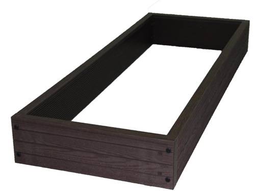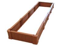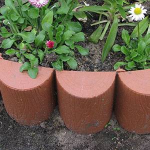 - Панели "Градинска дъска". Доста висока якост и твърдост на конструкцията, за да издържи на натиска на голямо количество почва. Височината е до 15 см, а дължината на един елемент достига 3 м. Частите са свързани чрез специални канали и скрепителни елементи, което значително улеснява монтажа.