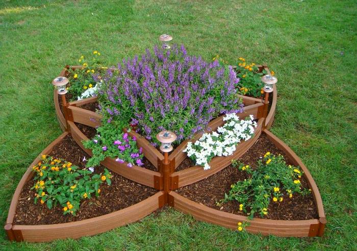 - Дървена версия. Класически за руските градини, кофражът често се използва в оранжерии, за да се запази формата на леглата. Те дори използват плетени клони, за да оформят цветни лехи. Минус едно - дървото изгнива с времето и трябва да се пребоядисва навреме, увеличавайки експлоатационния живот.