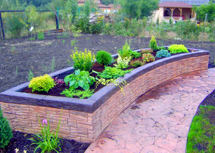 Красиви високи легла могат да бъдат направени от различни материали. Бетонът и тухлата се считат за най-приемливи. С тях се работи много по-лесно и не изискват никакви специални грижи. Често такива дизайни се използват за засаждане на декор.