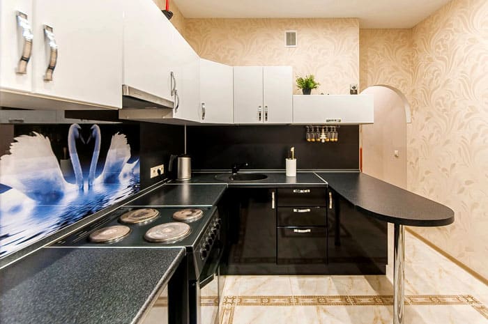 Anche in una piccola cucina, ci sono molte possibilità per decorare un angolo bar, e anche in un grande spazio questa è un'applicazione infinita della fantasia. Offriamo una panoramica degli interni con l'inserimento di una struttura bar nei loro arredi.