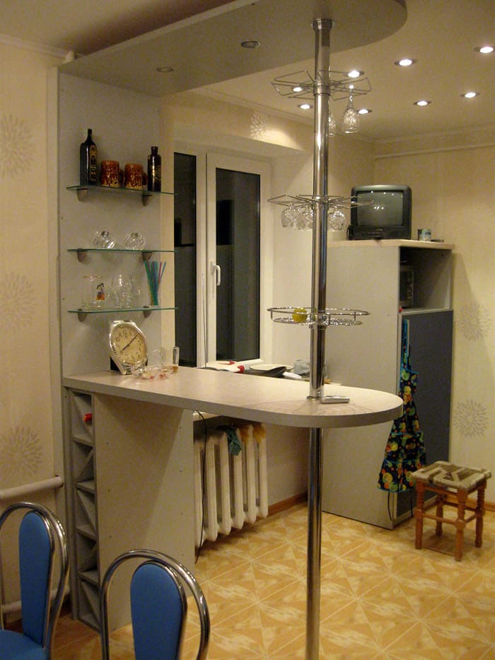 Ci sono molte opzioni per i banconi bar, i design sono diversi, ognuno è adatto per un particolare tipo di stanza per stile e dimensioni.