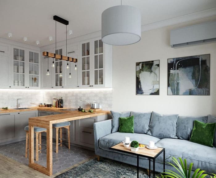 - 5.1 Opzione combinata: banconi bar tra la cucina e il soggiorno con esempi di foto