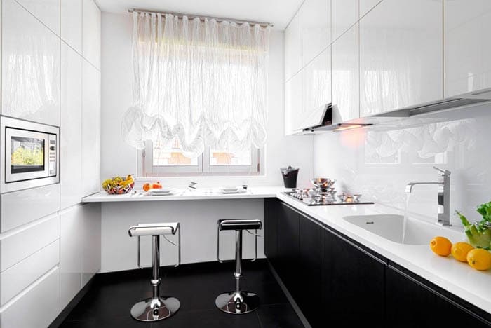 Il design angolare a forma di U sembra elegante e moderno e la parte migliore è il risparmio di spazio. Questa è spesso un'estensione della superficie di lavoro.