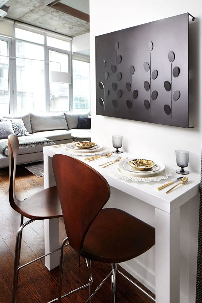 Non c'è posto per una struttura a tutti gli effetti in uno spazio ridotto, pertanto, prevedono la possibilità di posizionare un piano di lavoro con un'altezza di 90 cm, come parte di una parete o di un'area di lavoro.