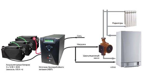 Se vivi in una casa di campagna e hai impianto di riscaldamento autonomo, che funziona con una caldaia, quindi senza alimentazione in standby non abbastanza.Se la durata dello spegnimento non differisce e il periodo senza luce è molto più breve rispetto a quello con esso, il collegamento di un UPS alla caldaia sarà un'opzione eccellente. Non funziona da solo, ma con una batteria, e più il loro numero, più a lungo il sistema sarà in grado di funzionare. Quando si sceglie un UPS, è necessario prestare attenzione alla sua tipologia, poiché non tutti sono ugualmente "utili" per un particolare tipo di caldaia.