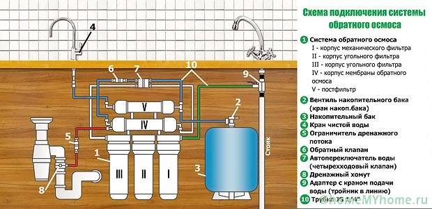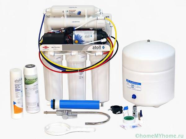 Informazioni utili! In abitazioni con caratteristiche di bassa pressione, interruzioni dell'approvvigionamento idrico, sarà inoltre necessario montare una pompa. La confezione può includere anche una lampada di disinfezione UV. Per i filtri a osmosi inversa, è necessario un accumulatore idraulico (serbatoio a membrana), che richiederà spazio aggiuntivo.