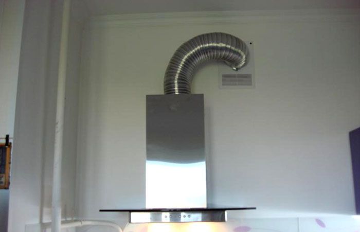 I condotti d'aria corrugati sono utilizzati per collegare la cappa della cucina e ventilatori assialiinstallato in un bagno o in una toilette, durante l'installazione di scaldabagni a gas e caldaie per riscaldamento di vari tipi.