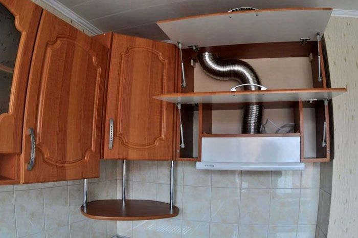 A volte, quando si eseguono lavori di installazione, sorgono situazioni non standard che richiedono una considerazione separata: la necessità di collegare la corrugazione o nasconderla dallo spazio visivo della zona cucina.