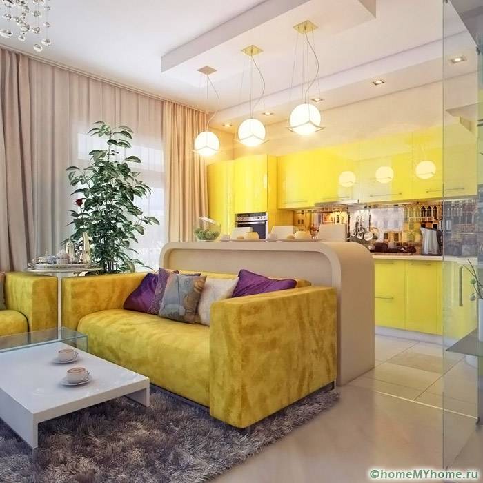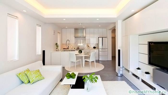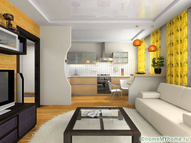 - 1 Soggiorno combinato con cucina: foto e applicazione