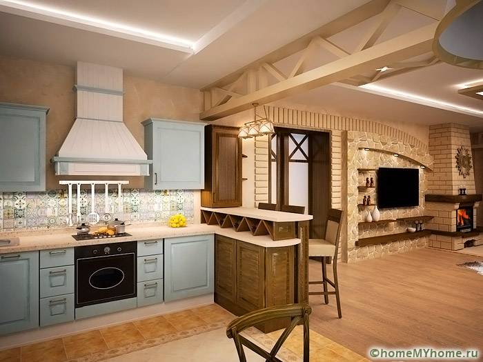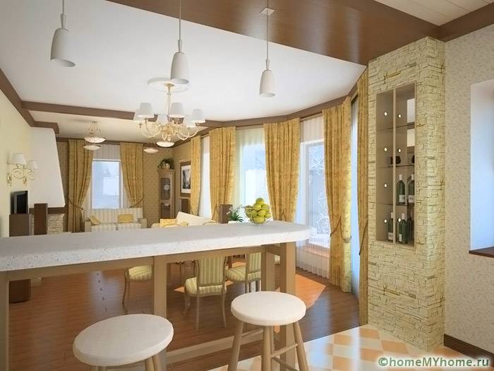Consigli utili! Come opzione, è possibile utilizzare una parte del muro remoto su cui è installato il piano di lavoro come bancone da bar.