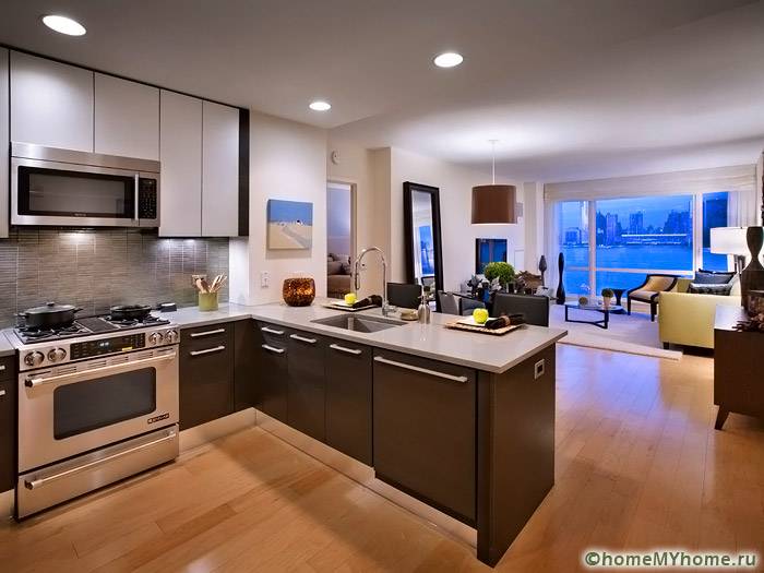 - 4 Cucina con soggiorno, combinata: foto e metodi di layout