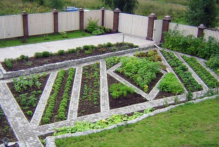 I percorsi tra i letti possono essere lasciati così come sono, cosparsi di piccole pietre o ricoperti di lastre di pavimentazione. Dipende dalla scelta dell'arredamento del giardino che scegli.