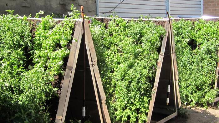 - Tre creste parallele identiche. Di solito le strutture sono strette, rendendo facile diserbare l'intera area intorno alle piante.