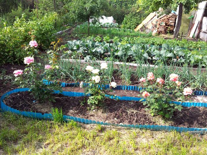 Non è affatto più facile usare i bordi per i letti con le tue mani. La morbidezza del materiale ti consente di creare qualsiasi forma e, per forza, il materiale non viene solo aggiunto alla trincea, ma vengono utilizzati anche pioli di plastica. Ecco alcuni interessanti esempi fotografici di lavori finiti: