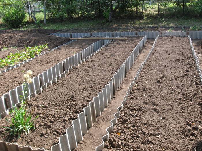 Vale la pena fare uno strato di fertilizzanti organici sotto il terreno e posare il drenaggio per prevenire il ristagno del terreno. Ecco un esempio video di come rifare i letti e creare 3 strisce strette identiche: