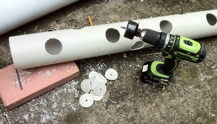 - In quello grande, praticare fori con un diametro grande (7 cm) a una distanza di 15 cm, mentre in quello piccolo vengono realizzate tre file di fori con un diametro di 0,5-1 cm e un intervallo di 8-10 cm.