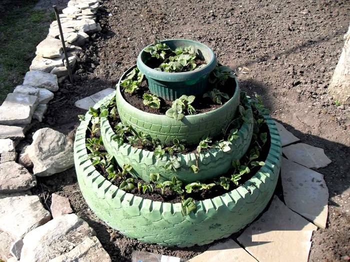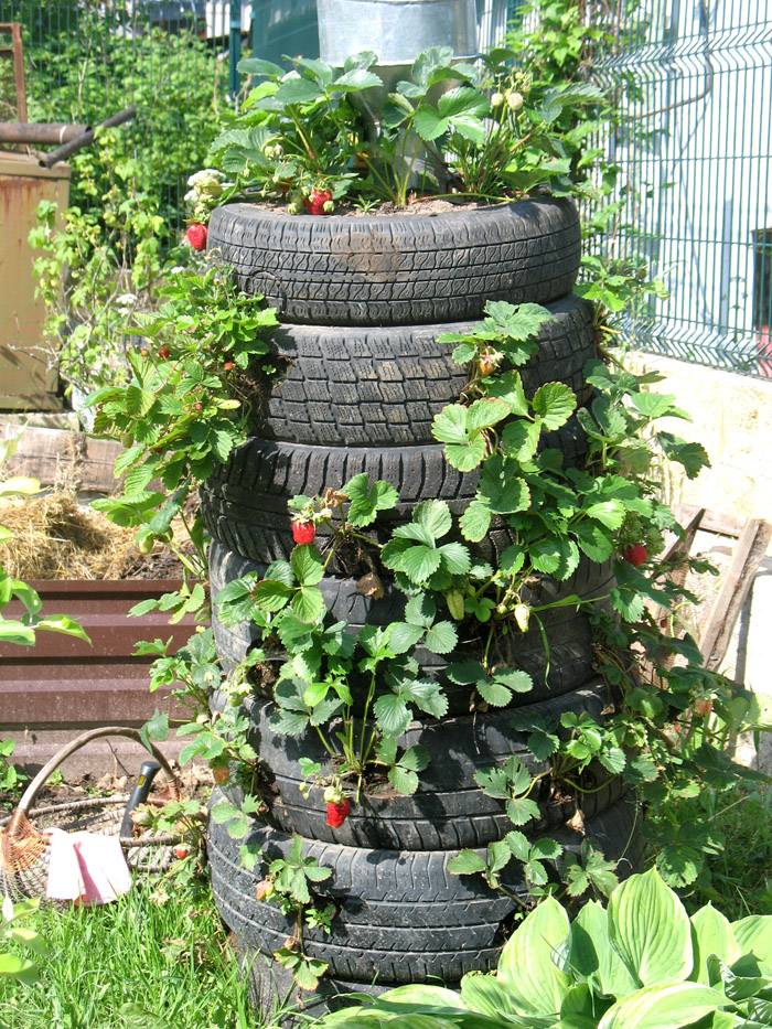 Interessanti letti di fragole fai-da-te con pneumatici per auto