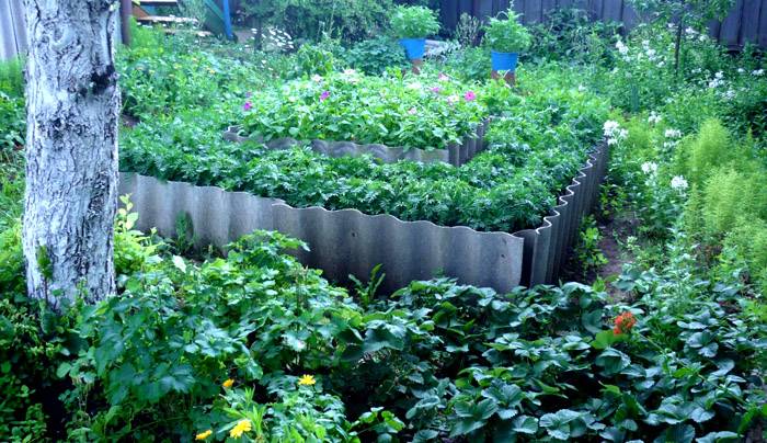L'uso dell'ardesia piatta per i letti è noto da molto tempo. Ogni giardiniere ha visto tali disegni almeno una volta. Il materiale per i lati presenta una serie di vantaggi: