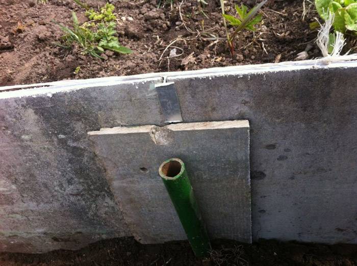 Per posare una tale recinzione nel terreno, è sufficiente scavare una piccola trincea lungo il perimetro della futura cresta. Metti l'ardesia in linea retta in questo buco, circa la metà dell'altezza totale, e scava con la terra. Per capire la sequenza di azioni, guarda il video sull'argomento: