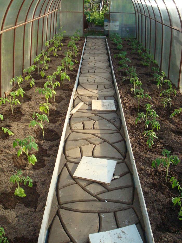 Se hai optato per una serra larga 3 metri, posizionala esattamente al centro, lasciando abbastanza spazio per il passaggio. Il percorso può essere coperto con piccoli ciottoli o coperto con un foglio in modo che le erbacce non necessarie non germogliano.