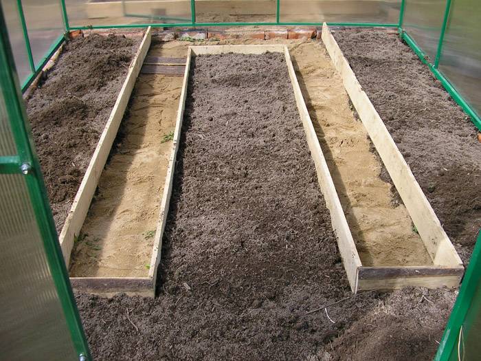Quando si sceglie la posizione dei siti di impianto nelle serre, tenere presente che i letti vicino alle pareti non devono essere larghi più di 1 m. E le dimensioni di quella centrale non possono superare i 3 m. Ciò è dovuto alla necessità di diserbo e allentamento gratuiti del terreno.