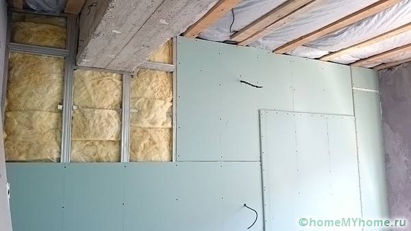 Se la deviazione è inferiore a 6 mm, il materiale viene fissato con una soluzione speciale e, se è maggiore, viene creata una cornice speciale. Il fissaggio avviene con viti autofilettanti. Quindi la superficie viene stuccata e incollata.