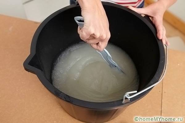 - la colla è diluita nel contenitore. Dovresti ottenere una soluzione senza grumi e coaguli;