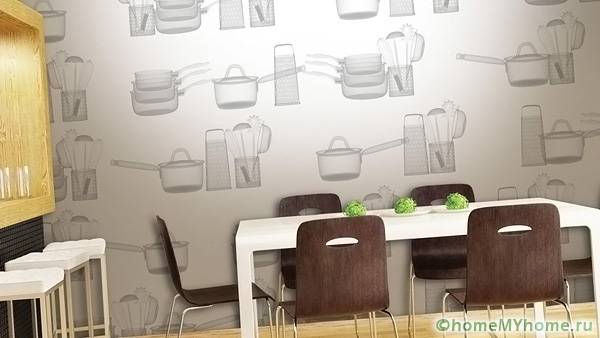 Carta da parati per la cucina lavabile. Catalogo di idee fotografiche. Esempi di utilizzo e selezione di carta da parati lavabile per la cucina in una pubblicazione separata del nostro portale.