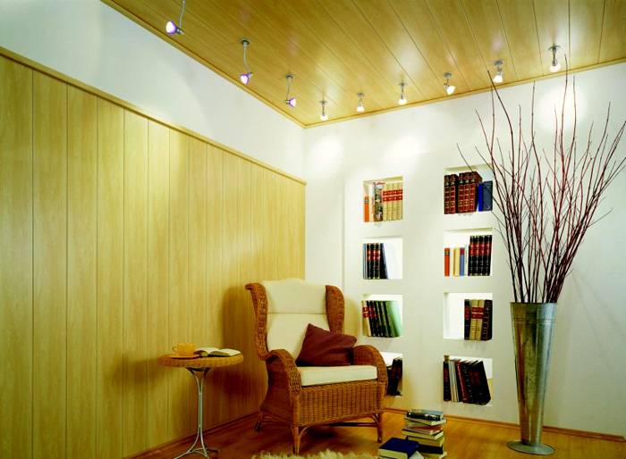 I pannelli in PVC sono ottimi per le strutture sospese. Un materiale simile può essere utilizzato per cucine, servizi igienici e docce. Per i soffitti vengono spesso utilizzati pannelli che imitano il rivestimento.