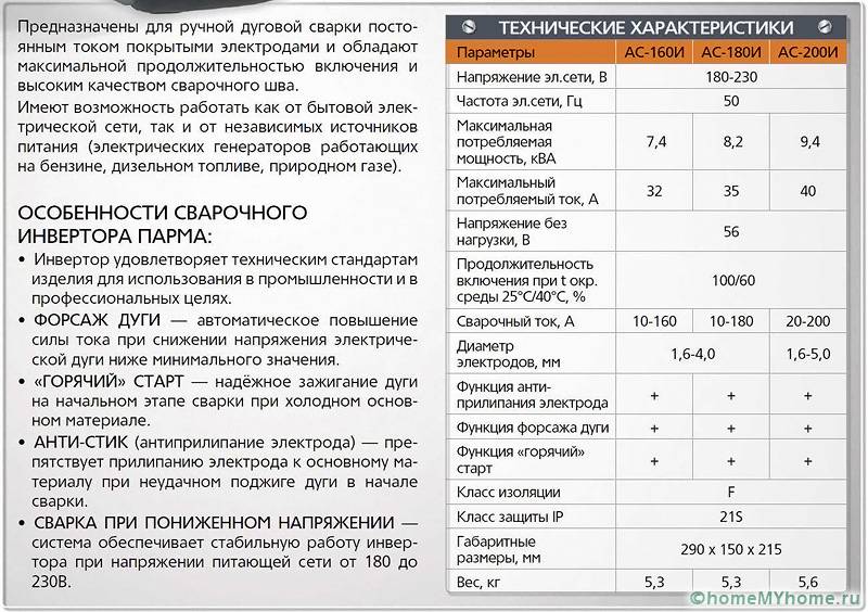Gli inverter domestici nei documenti sono contrassegnati dalle lettere MMA. Di seguito all'abbreviazione ci sono numeri che indicano il valore delle correnti di funzionamento - 200 o 250. Un dispositivo professionale ha la capacità di funzionare in un ampio intervallo di temperatura, da 150 a più 150 gradi. L'umile unità domestica ha un intervallo da zero a più trenta, e questo è sufficiente. Un'altra differenza tra un elettrodomestico e uno professionale e industriale è la durata del ciclo di lavoro. Un inverter professionale funzionerà per otto ore con pause di diversi minuti, uno industriale - un giorno con mezz'ora di riposo.Un buon elettrodomestico può cuocere ininterrottamente fino a mezz'ora con un intervallo di raffreddamento di 60 minuti.