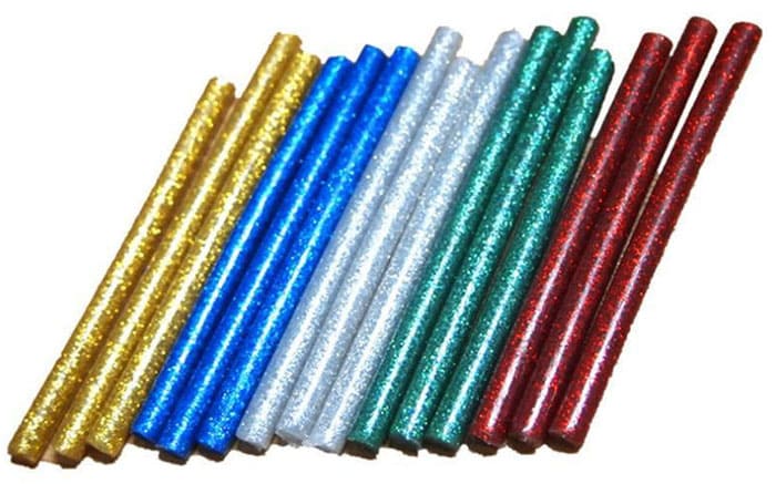 Gli adesivi colorati sono usati per mascherare la cucitura della colla e, se parliamo di direzione professionale, qui ogni colore ha il suo scopo altamente specializzato. Per quanto riguarda la creatività, la colla trasparente a caldo si macchia facilmente con pastelli a cera e glitter.