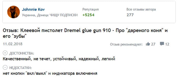 Un'altra recensione della pistola incollatrice Dremel 910:
