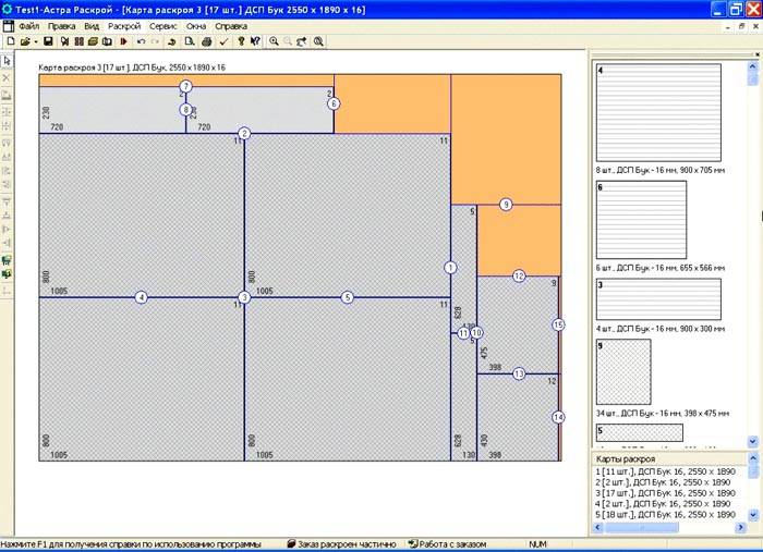 Esistono diversi programmi popolari per il taglio di materiali in fogli o rotoli: Bazik-Mebel, Astra, Cutting e altri. Tutti questi programmi sono a pagamento, ma puoi anche scaricare opzioni "crackate", anche se c'è un grande rischio di catturare una sorpresa non molto piacevole sul tuo computer, la cui eliminazione può costare di più che pagare per l'acquisto di software con licenza. Deve acquistare una licenza solo se la produzione di mobili è un mezzo per guadagnare per te, e per un singolo caso puoi fare un taglio di truciolato online su Internet, poiché ci sono molte risorse di questo tipo.