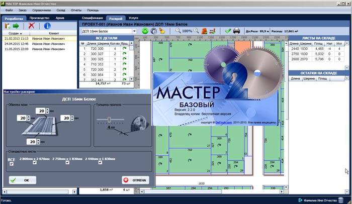 Dopo che il progetto del mobile è stato sviluppato, sono state calcolate le dimensioni di tutti gli elementi necessari ed è stato redatto un dettaglio dettagliato, è necessario fare una mappa di taglio del materiale. Ciò è necessario per il posizionamento ottimale di tutte le parti sulla piastra, per facilitare il lavoro del segatore e, soprattutto, per ridurre al minimo gli sprechi. Se ordini mobili da un'azienda, il designer sa perfettamente cosa fare e può tagliare facilmente il truciolato laminato secondo le dimensioni dei clienti, ma quando tutto è fatto a casa da solo, è necessario un programma speciale.