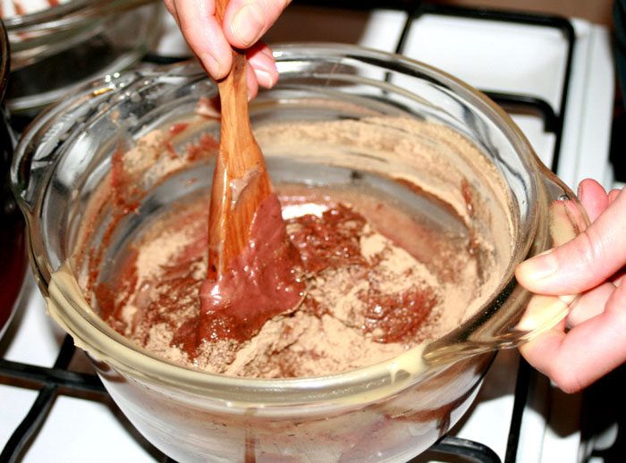 Versare il caffè nella base fusa, mescolare il tutto accuratamente e accuratamente, non servono grumi e grumi.