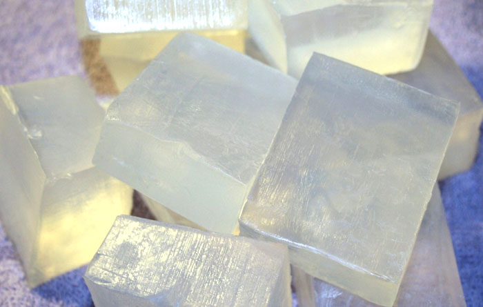 I negozi di sapone hanno basi per sapone già pronte: composizione trasparente e bianca.