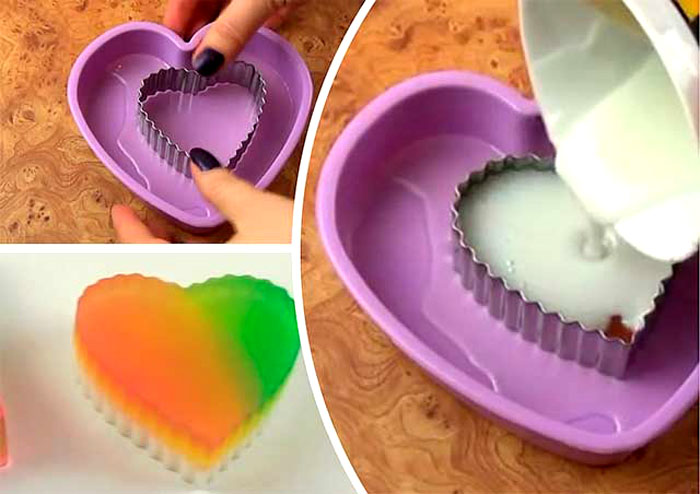 Il prodotto liquido viene versato negli stampi. I moduli vengono acquistati in qualsiasi negozio, ordinati tramite siti online. I normali stampi per pasticceria in silicone funzioneranno così come gli stampi per torte per bambini.
