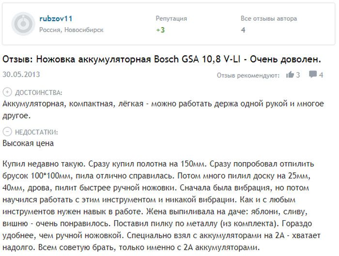 Feedback sul modello "Bosch GSA 10.8 V-LI":