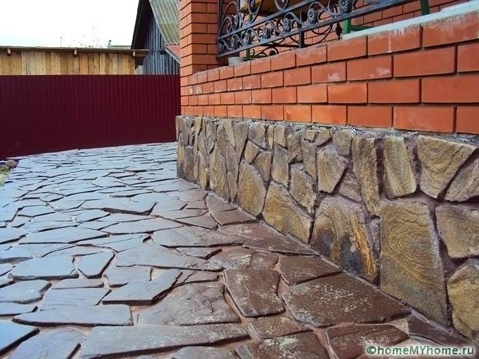Frammenti di rivestimento vengono attaccati alla superficie laterale del basamento utilizzando una soluzione adesiva che viene applicata alla base con una spatola dentata. Distanziatori in plastica vengono inseriti tra le piastrelle in modo che la dimensione delle fughe sia la stessa. La stuccatura viene eseguita dopo 48 ore.