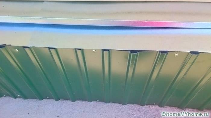 Le lamiere possono essere fissate direttamente alle travi orizzontali utilizzando viti autofilettanti. La presenza di elementi aggiuntivi sotto forma di strisce di sostegno migliora l'aspetto del rivestimento.