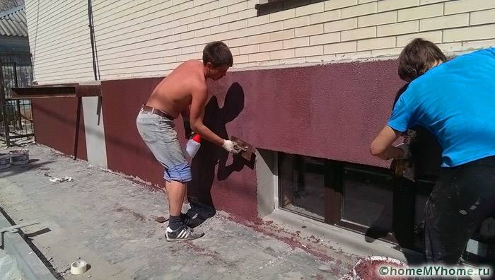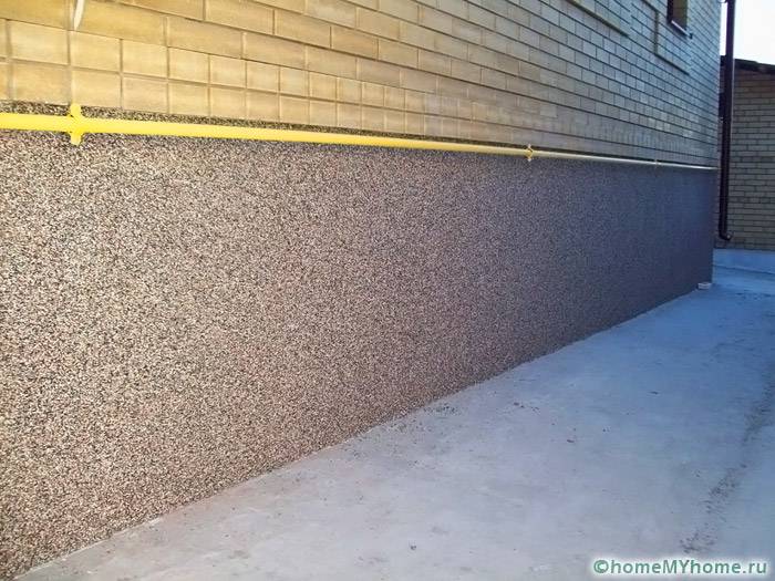 Non molto costoso in termini finanziari, ma un modo piuttosto laborioso di affrontare il seminterrato è l'intonacatura. Innanzitutto, la superficie della struttura viene livellata con una miscela di cemento e sabbia, dopo di che viene applicato uno strato decorativo sulla parte superiore.Se necessario, l'intonaco essiccato viene dipinto con vernici resistenti all'umidità.