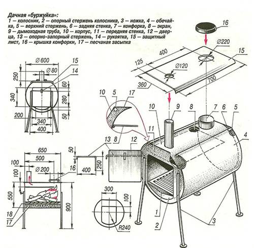 Fornello fai-da-te per lavorare fuori. Per il riscaldamento di locali tecnici è possibile utilizzare una stufa fai-da-te. Disegni, video e informazioni sulla creazione ti aiuteranno a comprendere i principi della costruzione di una struttura.