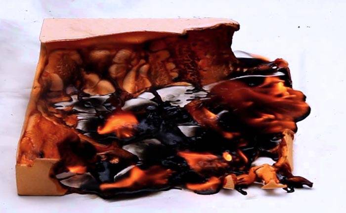 Il materiale è classificato come moderatamente infiammabile. Emette molto fumo durante la combustione. Questa caratteristica dovrebbe essere presa in considerazione quando si sceglie un riscaldatore per un'abitazione.